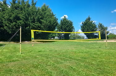 Het volleybalnet mag natuurlijk ook gebruikt worden voor badminton, voetvolley e.d.
