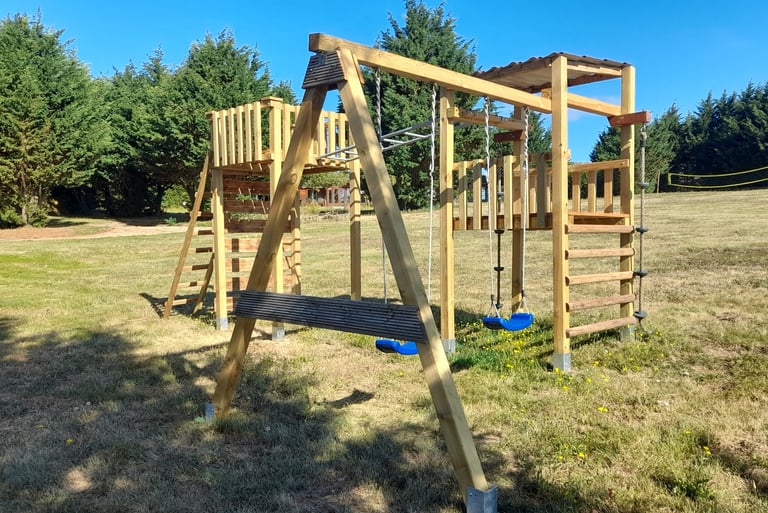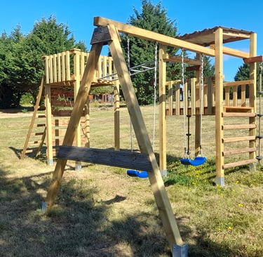 Voor de kinderen een speeltuintje met schommels en verschillende klimmogelijkheden. Inmiddels is er ook een glijbaan .